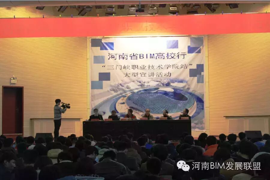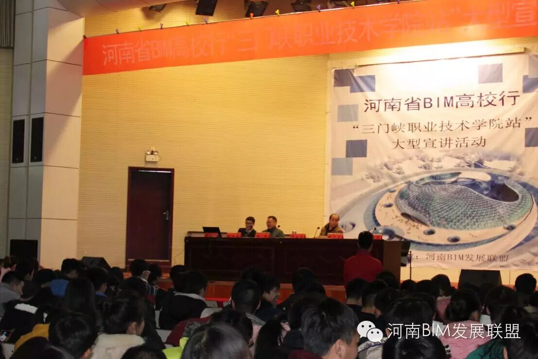 2015年11月26日下午,由河南BIM发展联盟发起的河南省“BIM高校行”活动在三门峡职业技术学院学术报告厅顺利举行。河南BIM发展联盟副秘书长、河南省建设教育协会副秘书长樊军,郑州大学土木工程学院副教授李洪欣,鲁班软件副总经理兼院校事业部总经理张洪军,南昌工学院大学生BIM协会创始人、首届主席、上海益埃毕集团BIM工程师王金城,河南BIM发展联盟副秘书长、河南建科软件技术有限公司总经理张慧华,三门峡职业技术学院建筑工程学院院长张占伟、党总支书记任安忠及学院1000余名师生参加了此次活动,活动由张占伟院长主持。